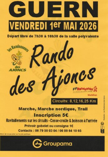 Le club Les Randonneurs des Ajoncs organise sa traditionnelle Rando des Ajoncs le vendredi 1er mai 2026 à Guern. Un rendez-vous incontournable pour tous les passionnés de marche, de marche nordique et de trail !
